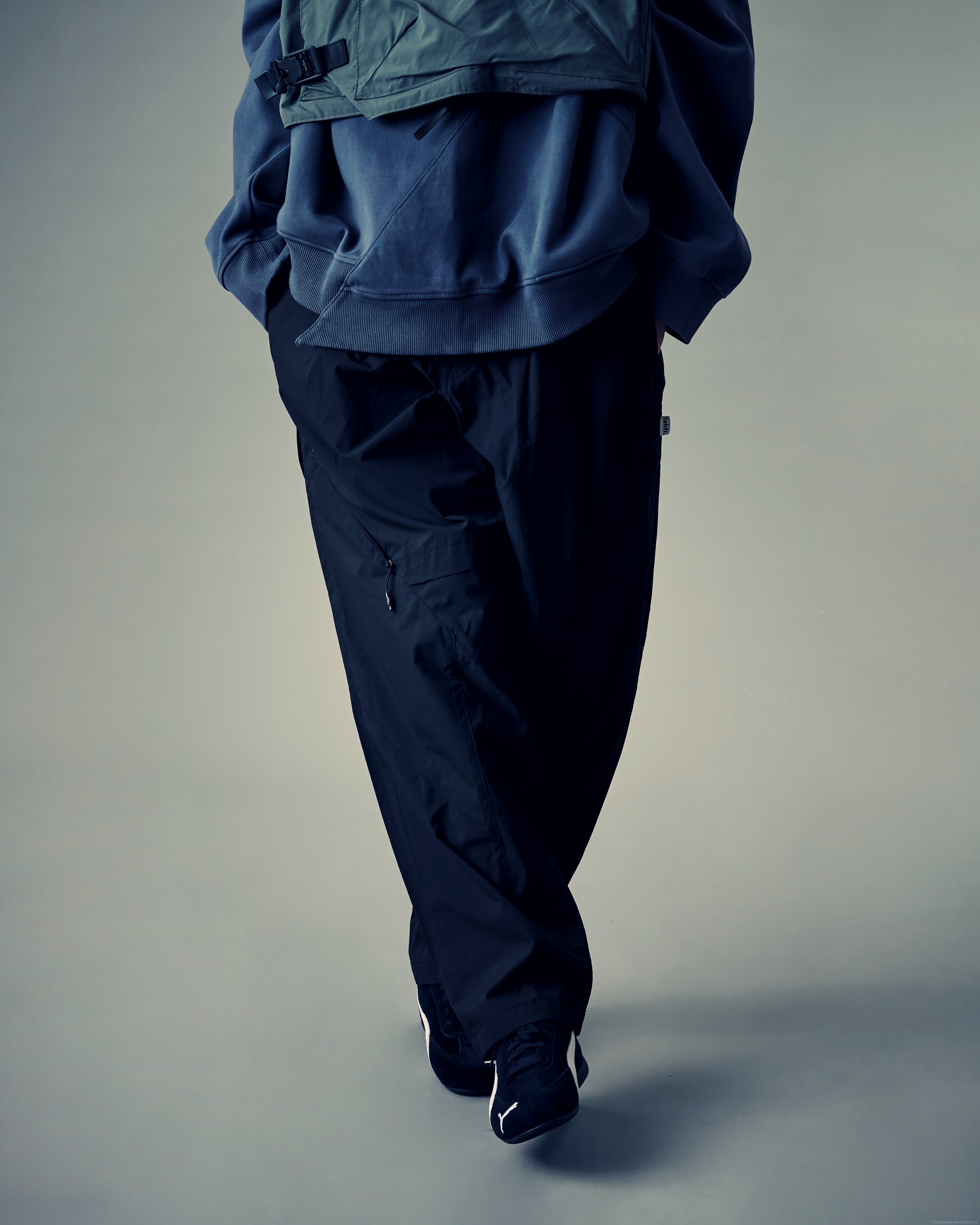 The Divisional Baggy Tapered Pants are made from full polyester fabric. Constructed with a wide fit and featured with out-seam line detail and 10 functional pockets.