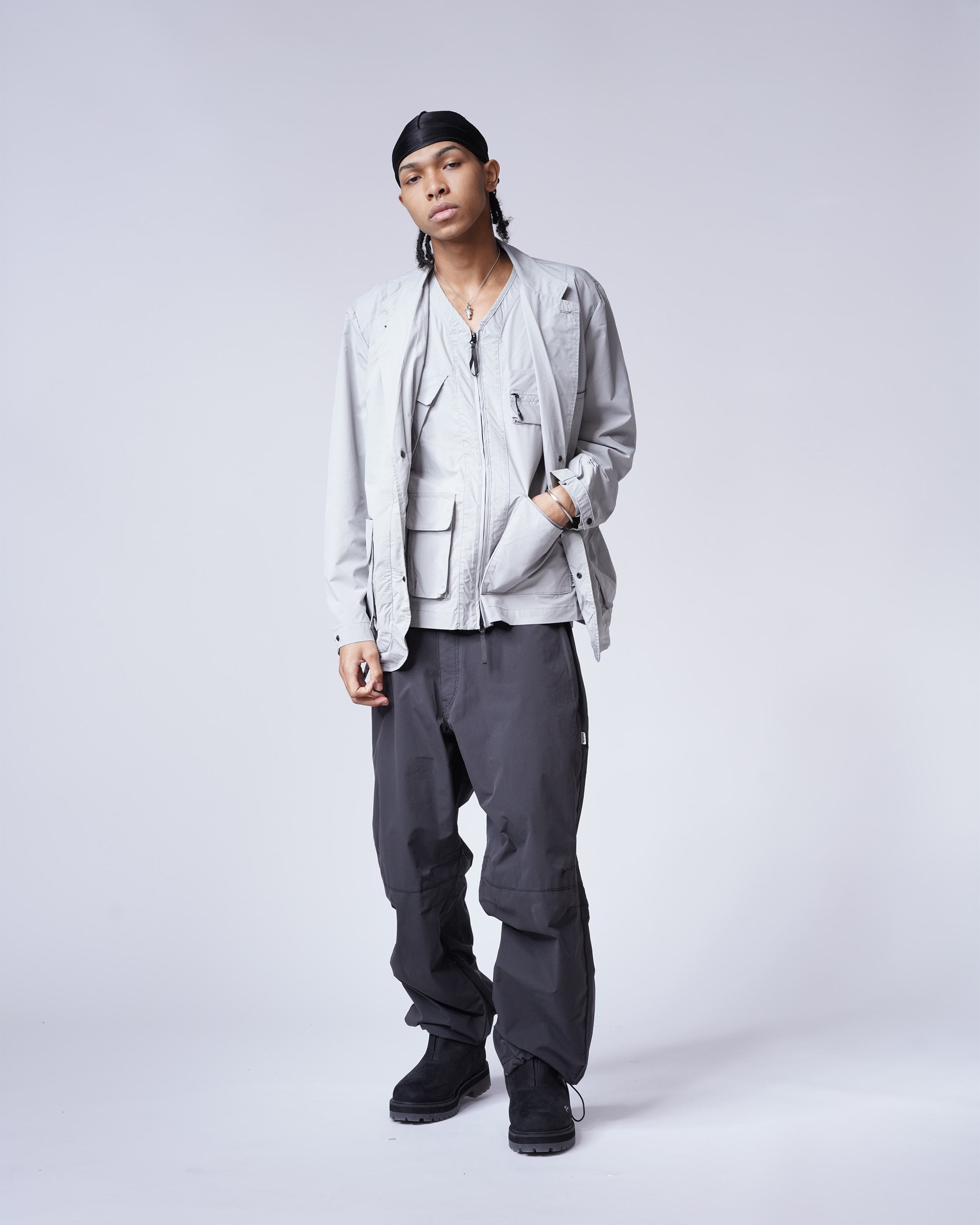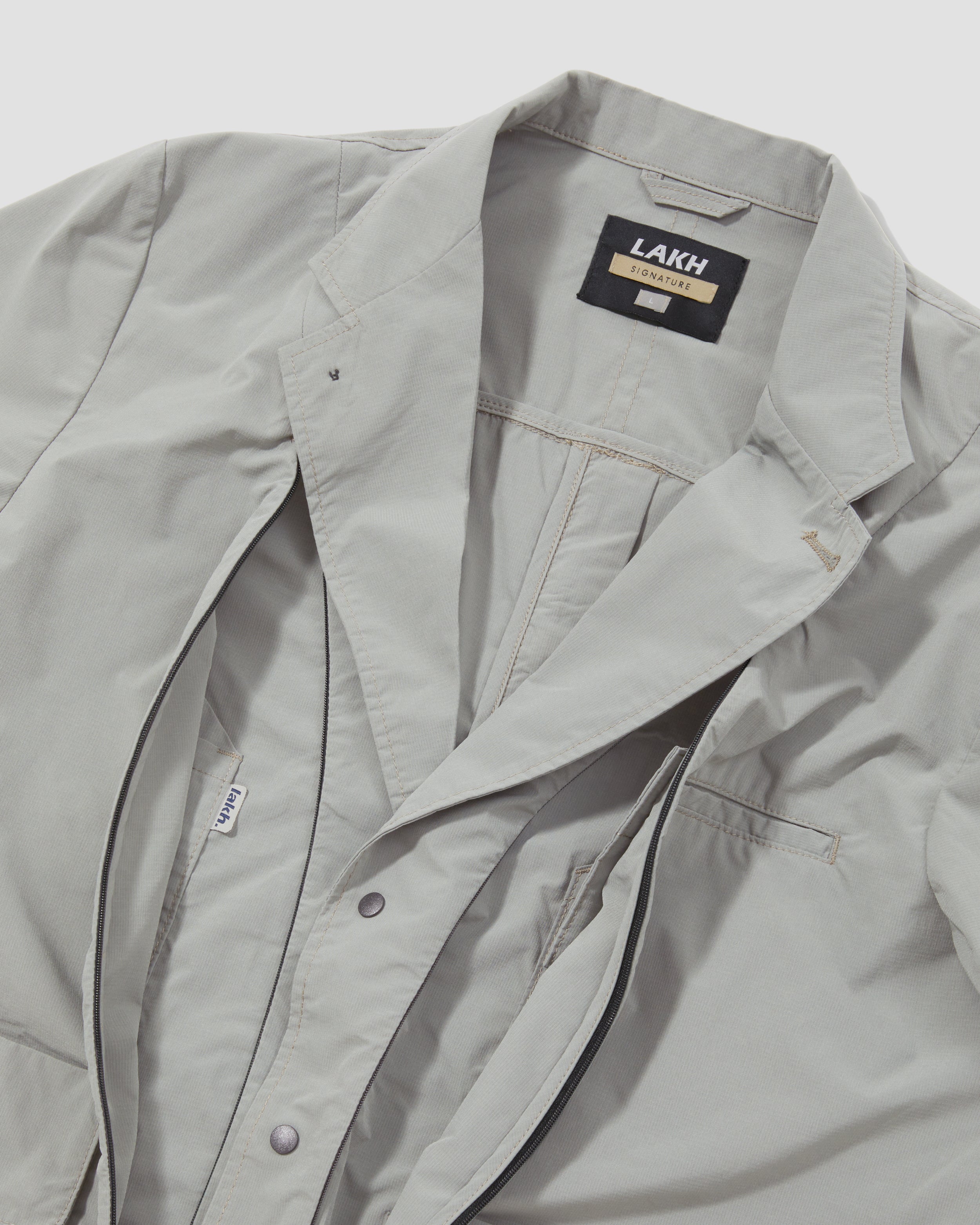 The Functional Suit Jackets take cues from classic tailoring with innovative design. Crafted with high-performance outdoor fabrics which blended from cotton and polyester. Features with out-seam line details and multi-functional zip pockets.