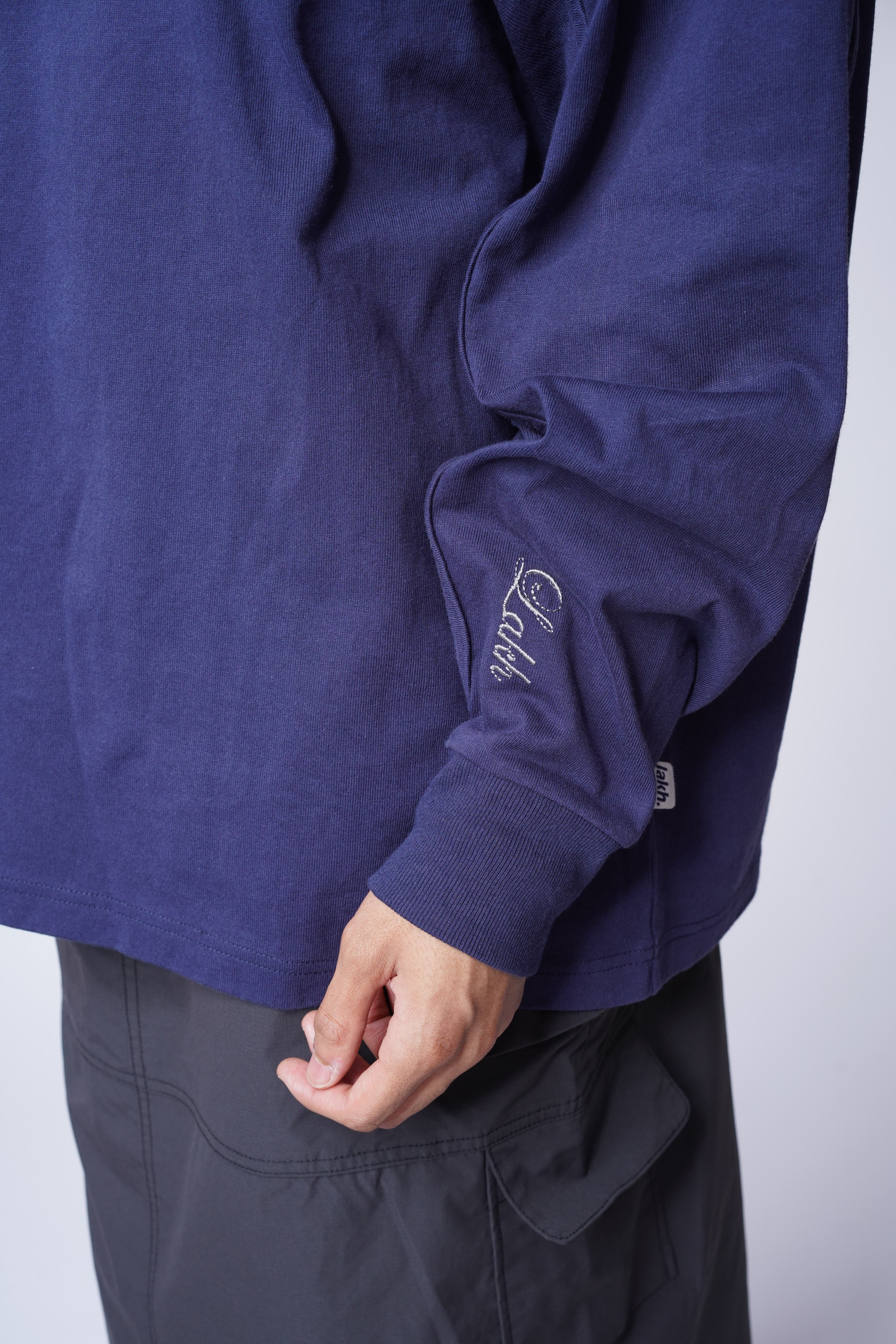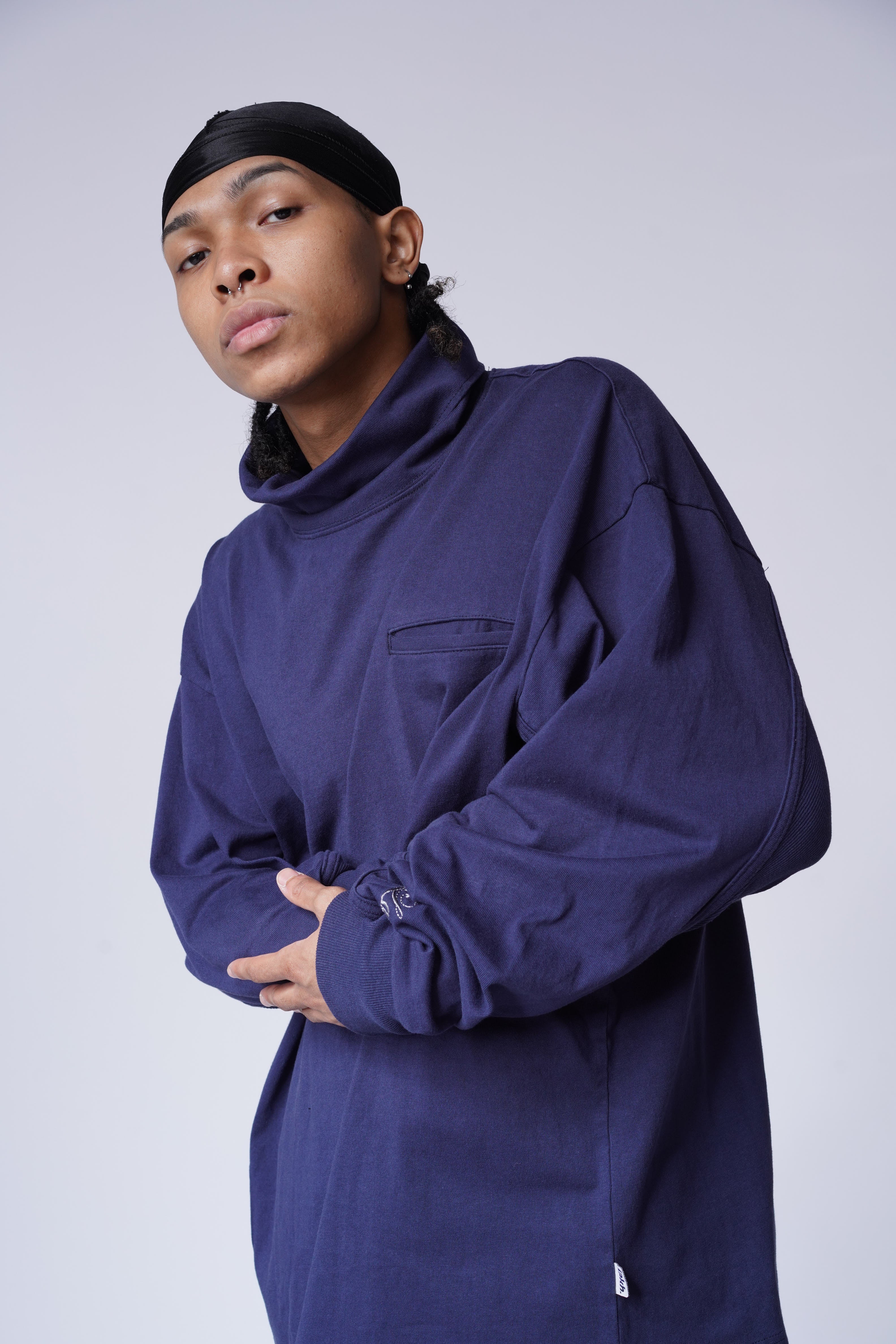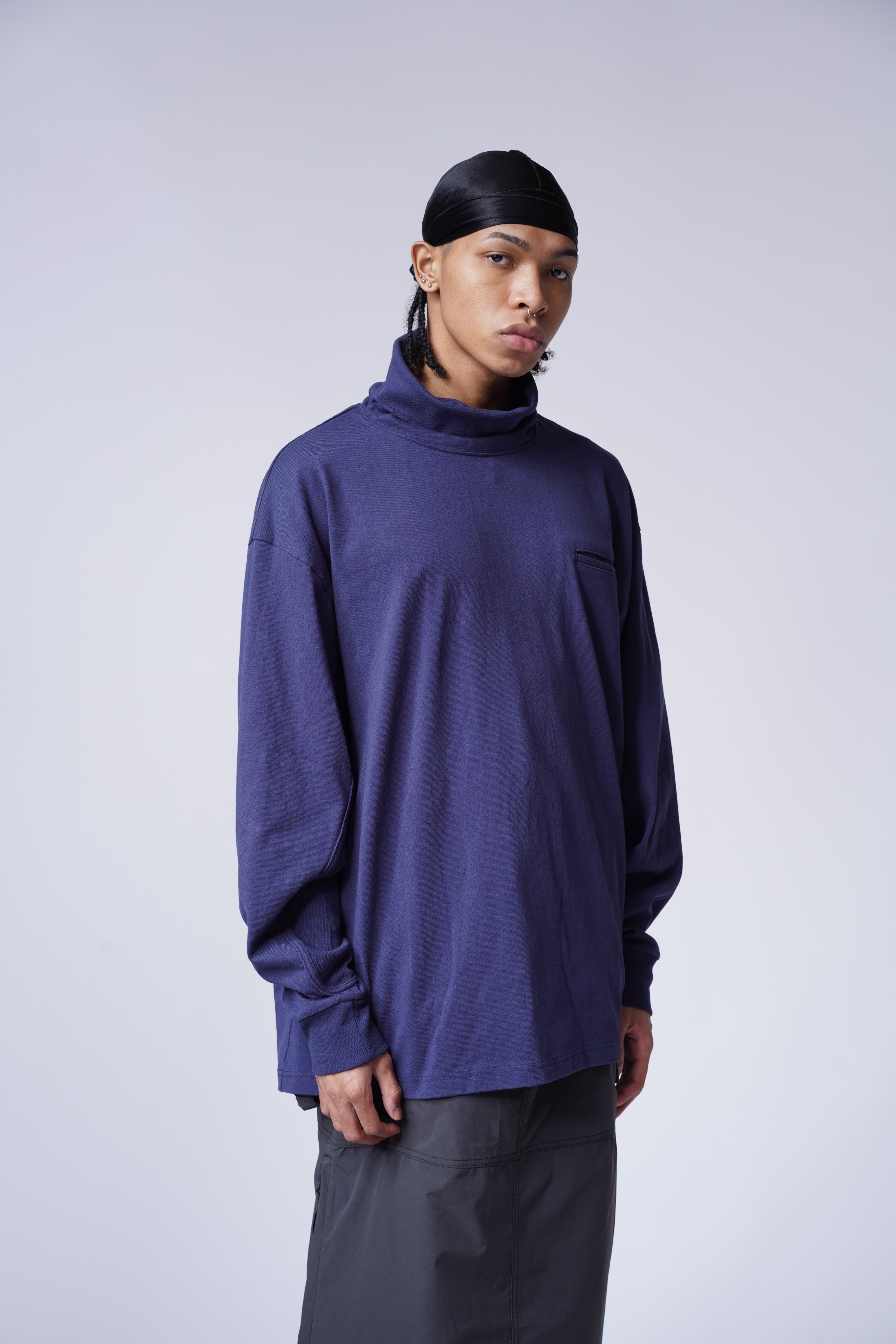 The Mock Neck L/S Tee is crafted from full cotton fabric and cut to an oversized fit. Featured with rib knit cuff and paneled construction.