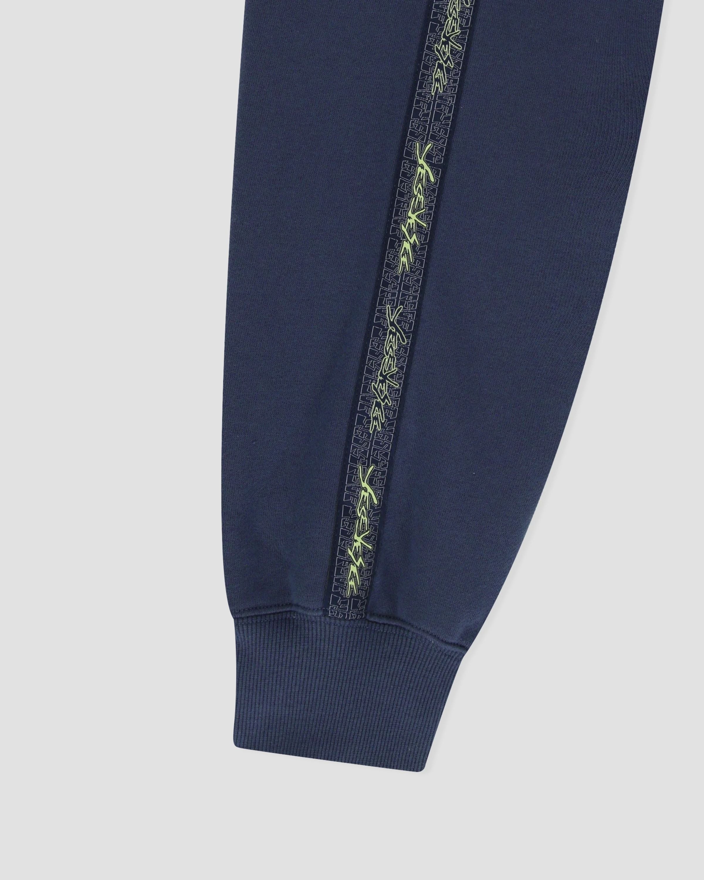 - Side label detail at the lower seam