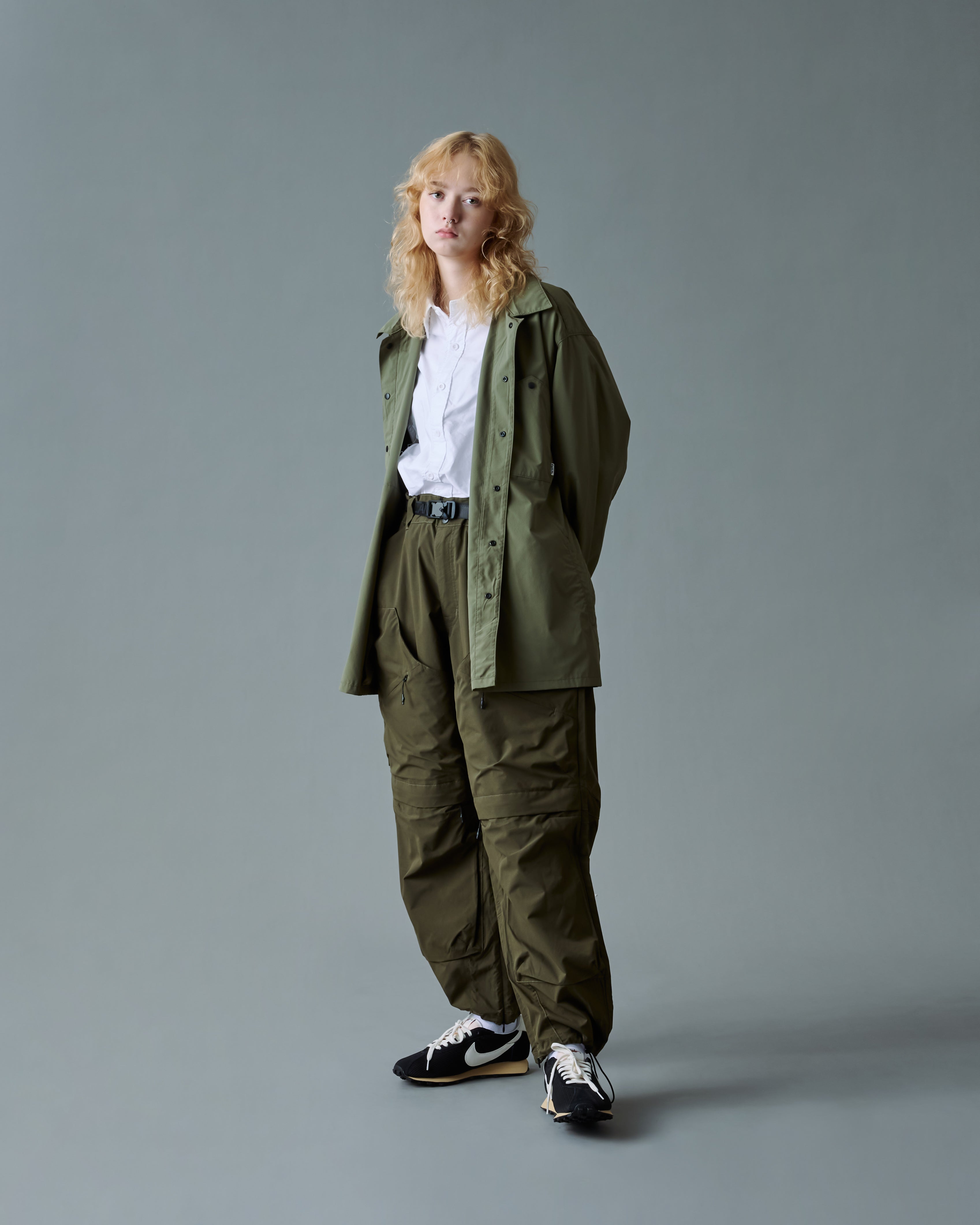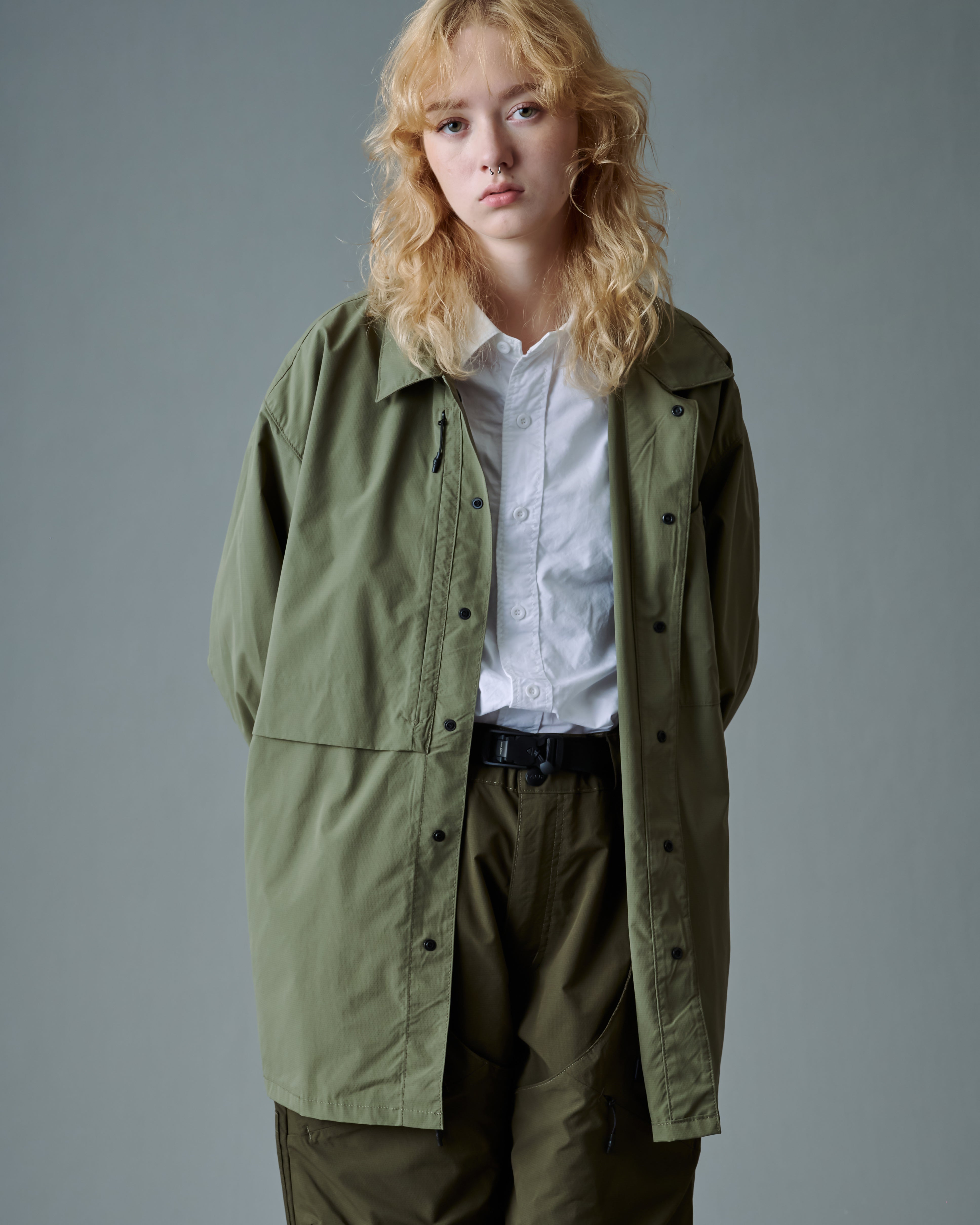The Oversized Deep Pocket Shirt is constructed with polyester fabric and offers a contemporary, oversized cut. Styled with pockets on the chest and out-seam line detail.