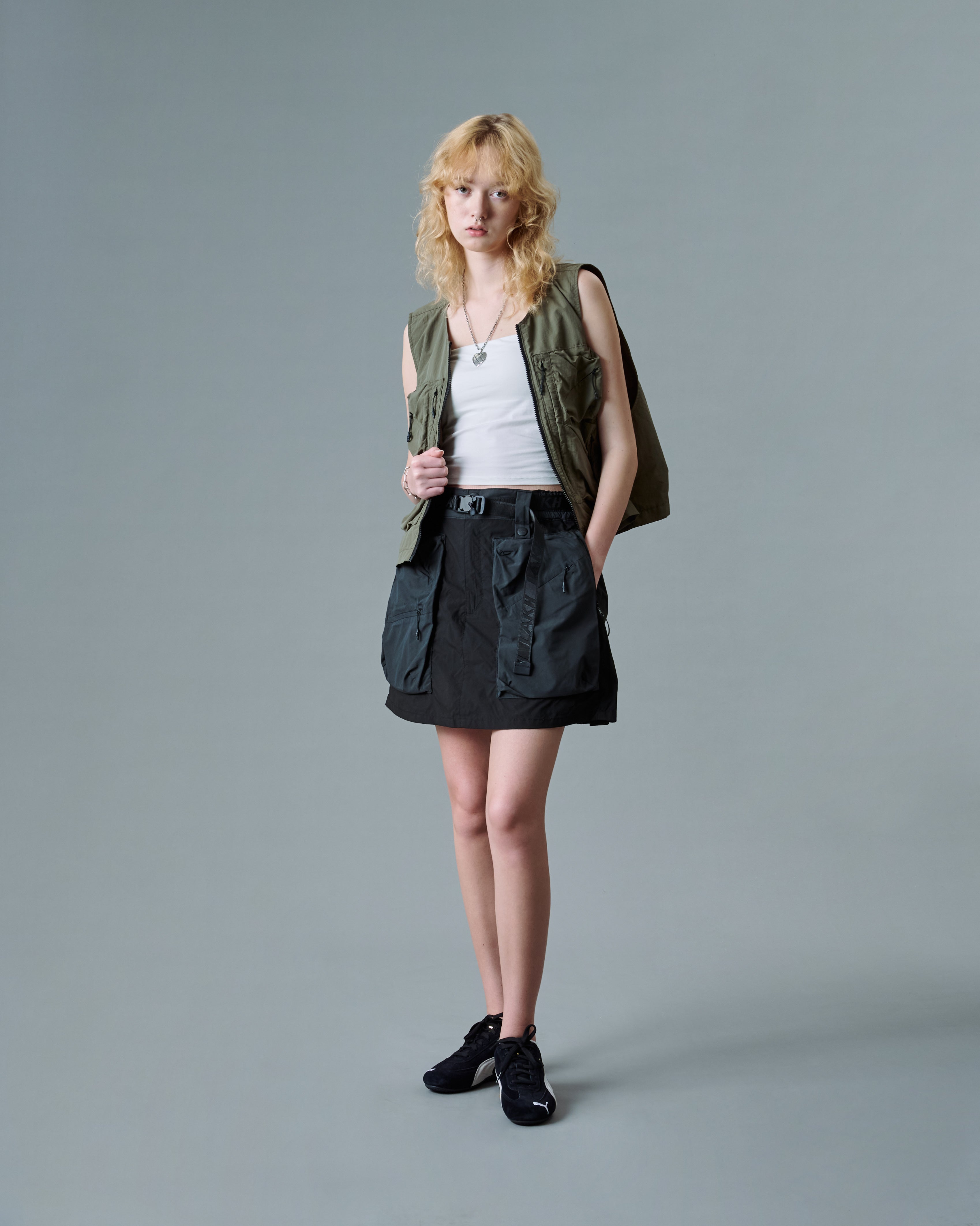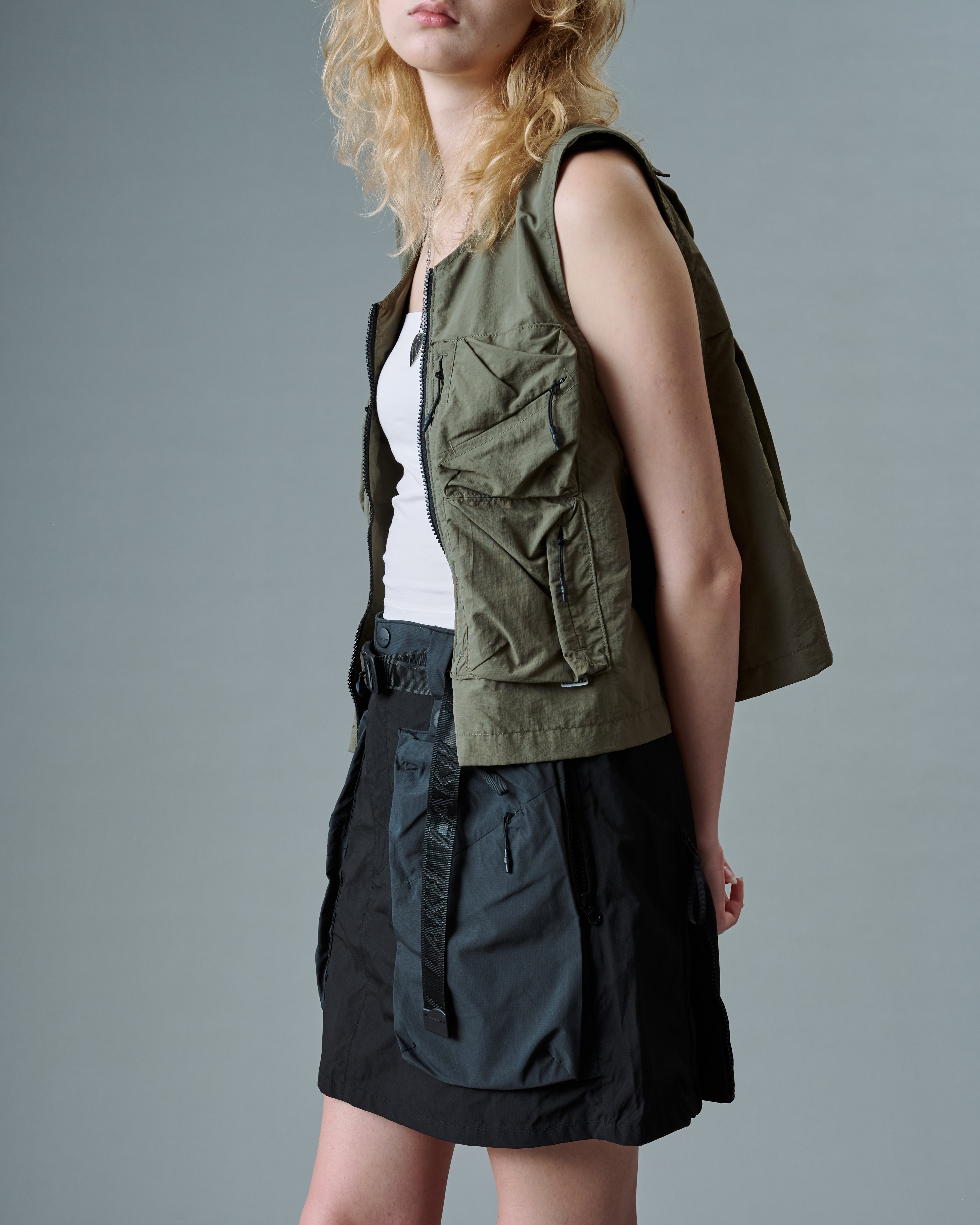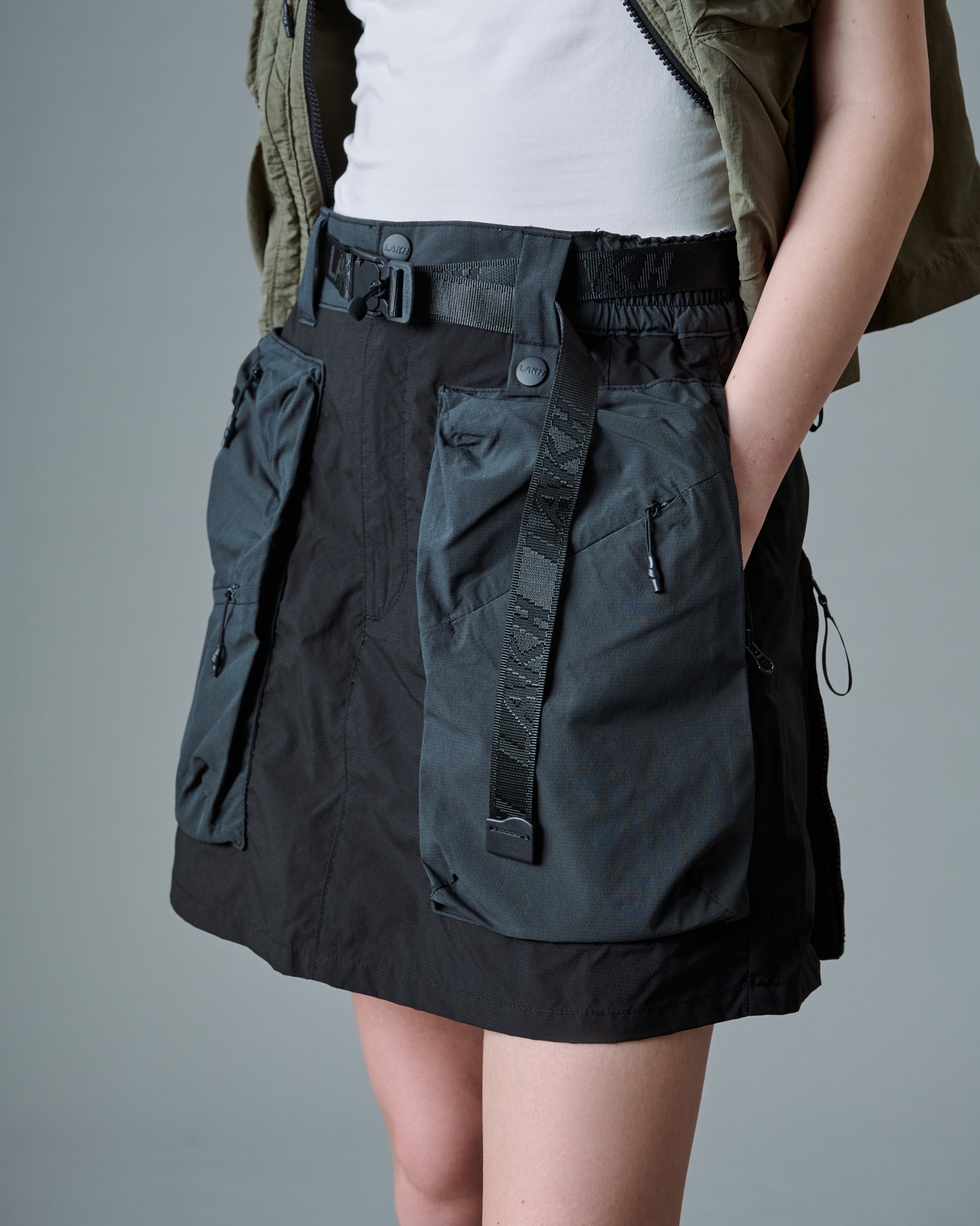 The Trapezoid Pockets Cargo Mini Skirt is a girlish spin on the workwear-inspired piece. They’re crafted from full nylon fabric with extendable detail. Styled with 3D functional pockets on both sides.
