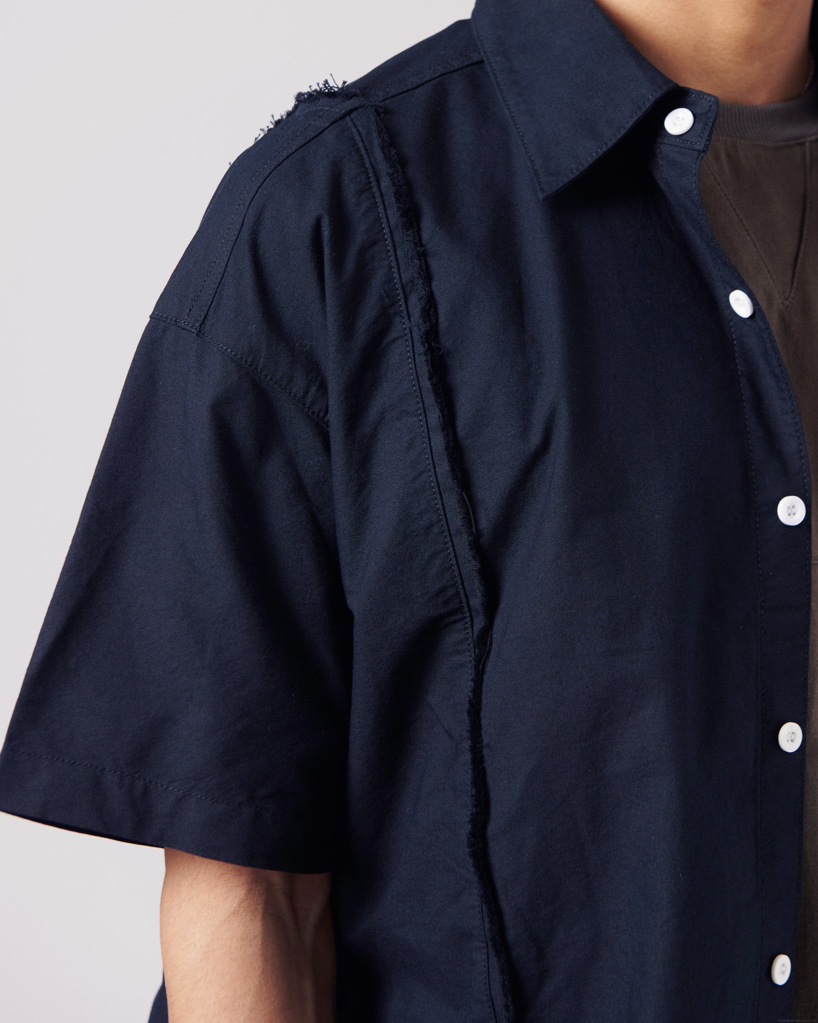 The S/S Raw Edge Shirt are cut to a loose boxy fit - for day long comfort. Constructed from a lightweight, premium cotton fabric with distressed stitches details.